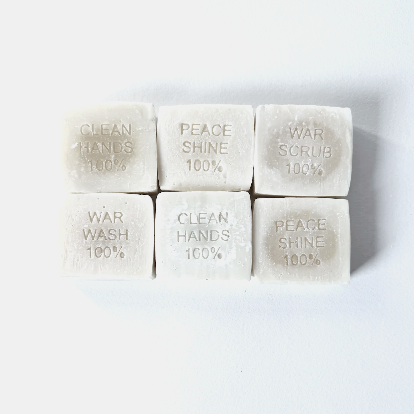 Handmade soap becomes the central material in a body of work that reflects on the human desire for cleansing, improvement and transformation. Drawing on the everyday ritual of washing, a familiar object is transformed into sculptural form, where its gradual erosion mirrors the idea of renewal and self-correction. Referencing the visual language of beauty products and consumer culture, the works question our persistent belief that simple actions or products can help remove what burdens us and offer the possibility of beginning again.