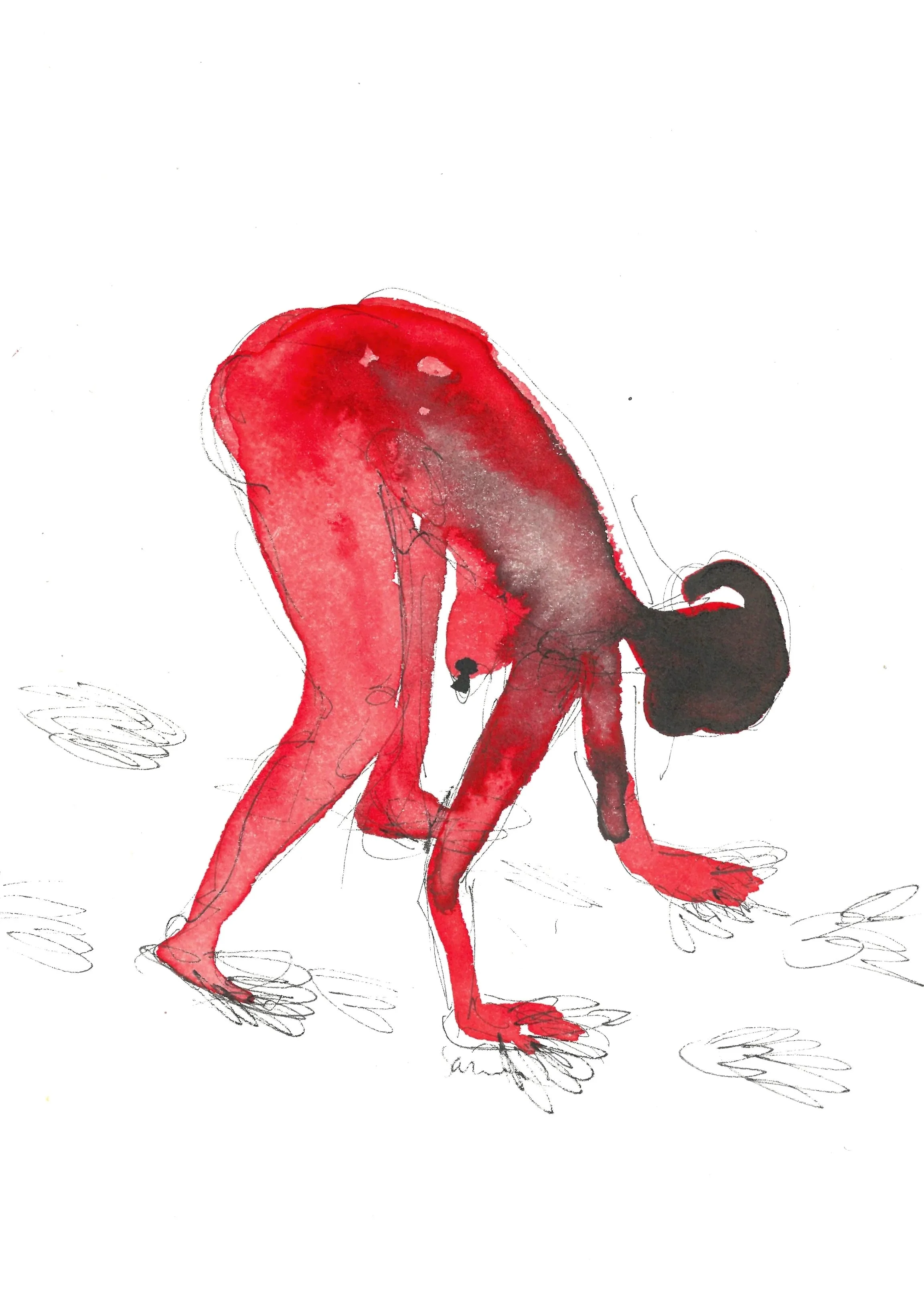 A series of quick drawings made in 1–3 minutes, sometimes from a moving model or in slow motion. The drawings are enhanced with watercolor, ink, and acrylic. Format: 13 × 18.5 cm and 18.5 × 13 cm, paper.